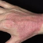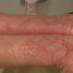 The doctor conducts a detailed survey depending on the location of the symptoms. In addition to hyperemia, acute allergic contact dermatitis (photos below) has mild swelling and a fuzzy border. The most severe cases are caused by allergic contact dermatitis in children. The chronic form of the disease is indicated by lichenification, thickening, fissures.