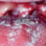 Symptoms include white patches on the tongue and mucous membranes. The disease shows symptoms characteristic of stomatitis: lack of appetite, capriciousness of the child, possible fever.